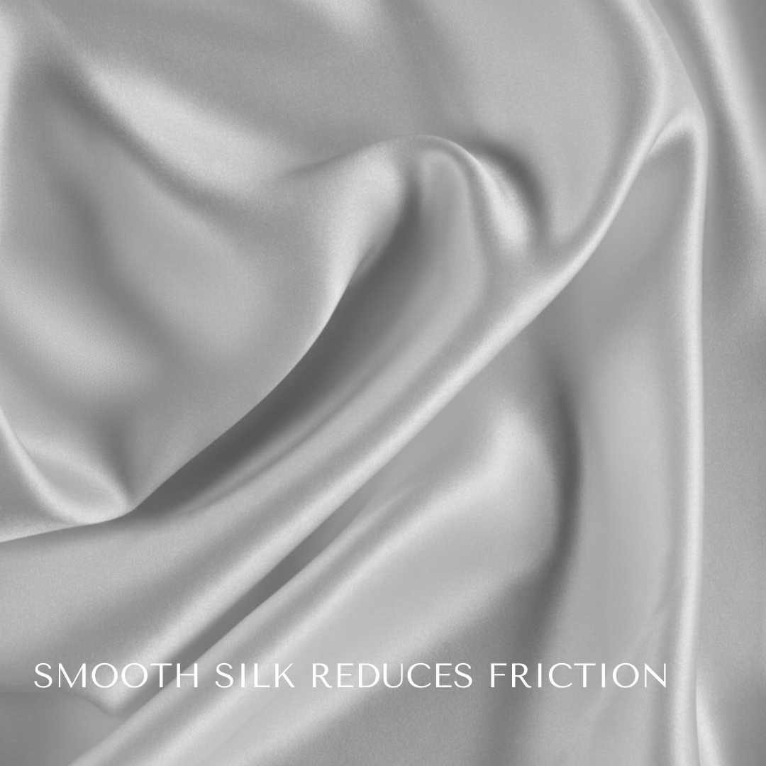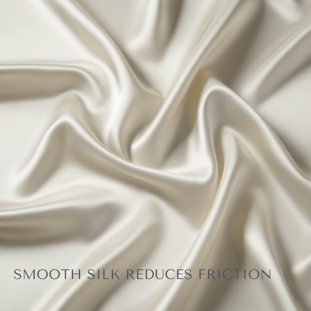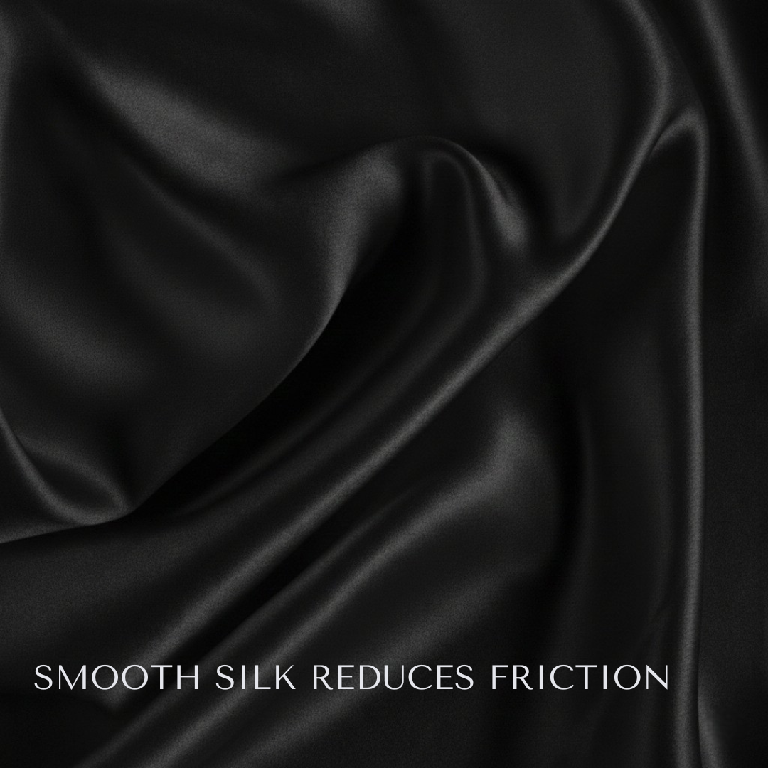 Slim for day, plush for night — gentle silk that protects without pulling.