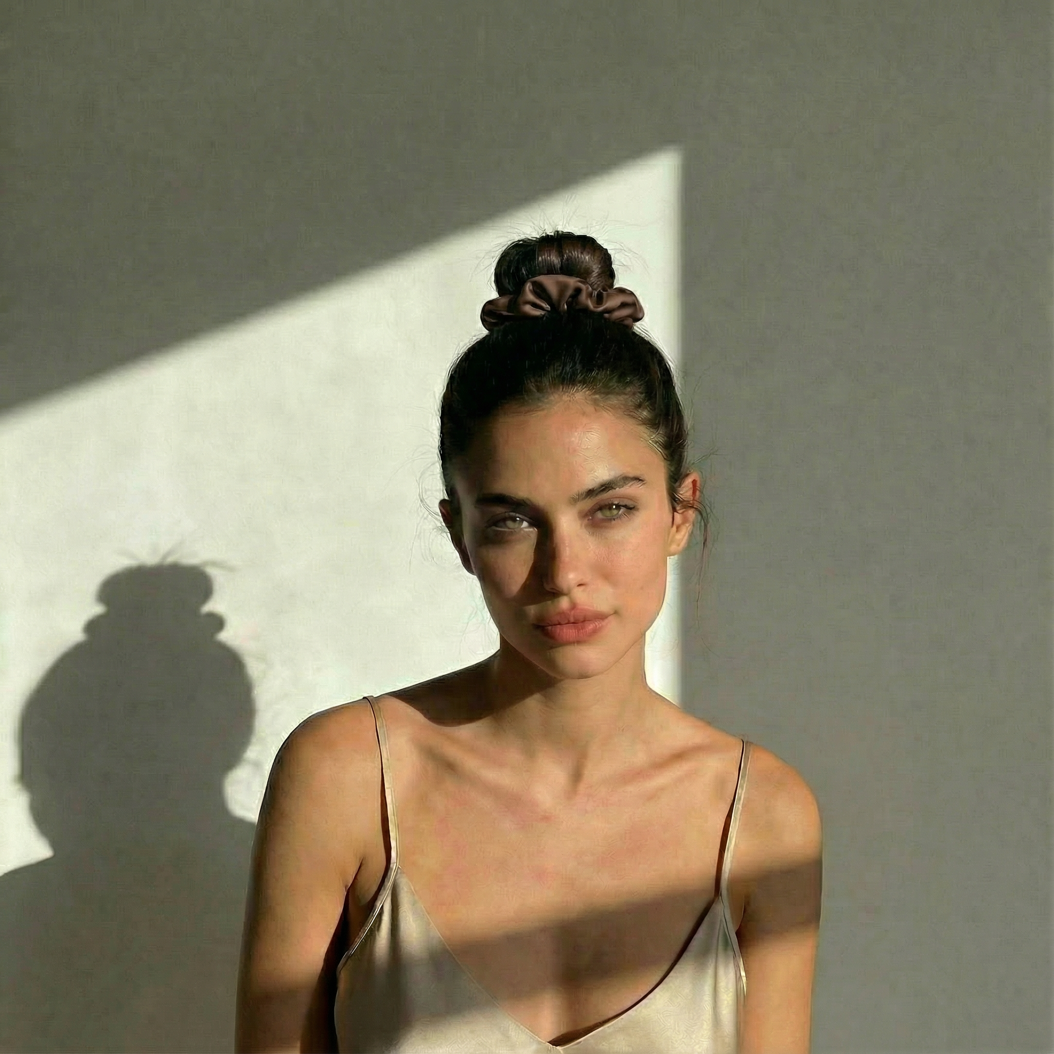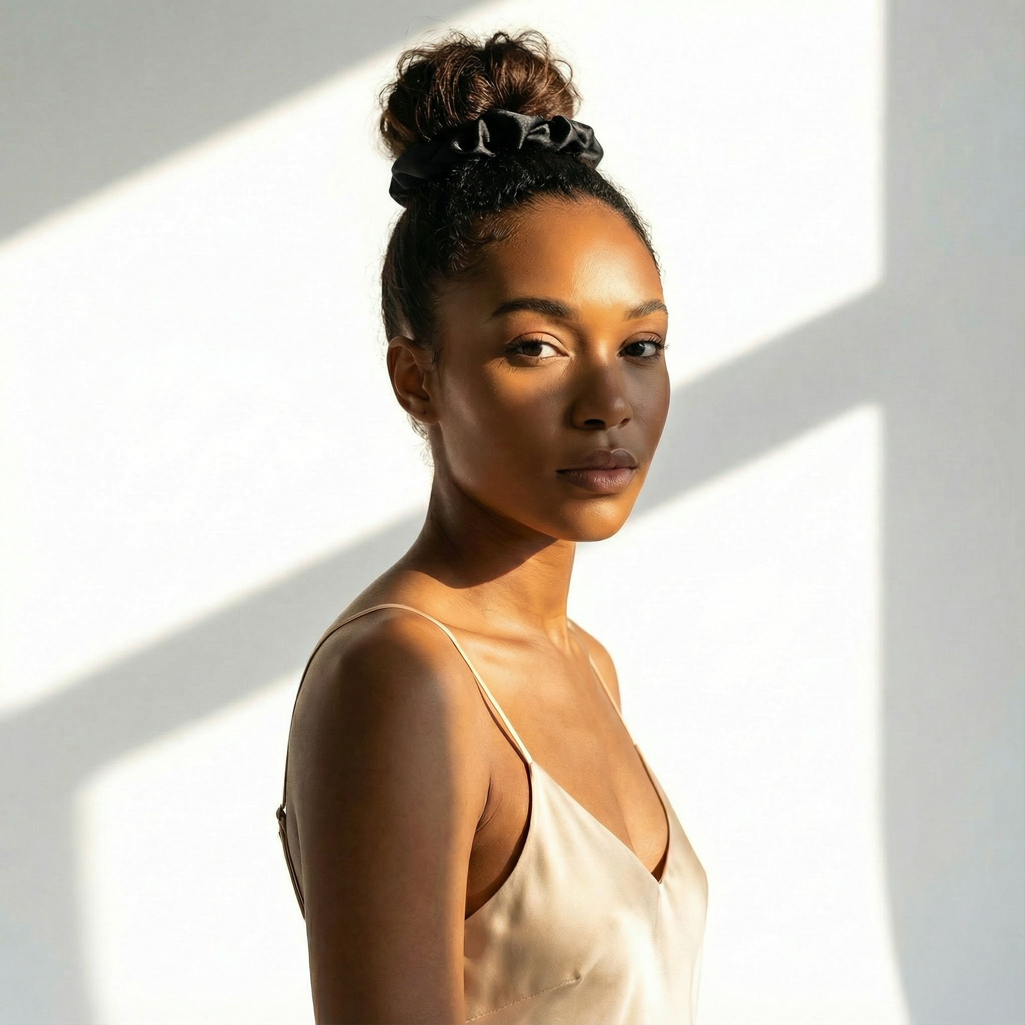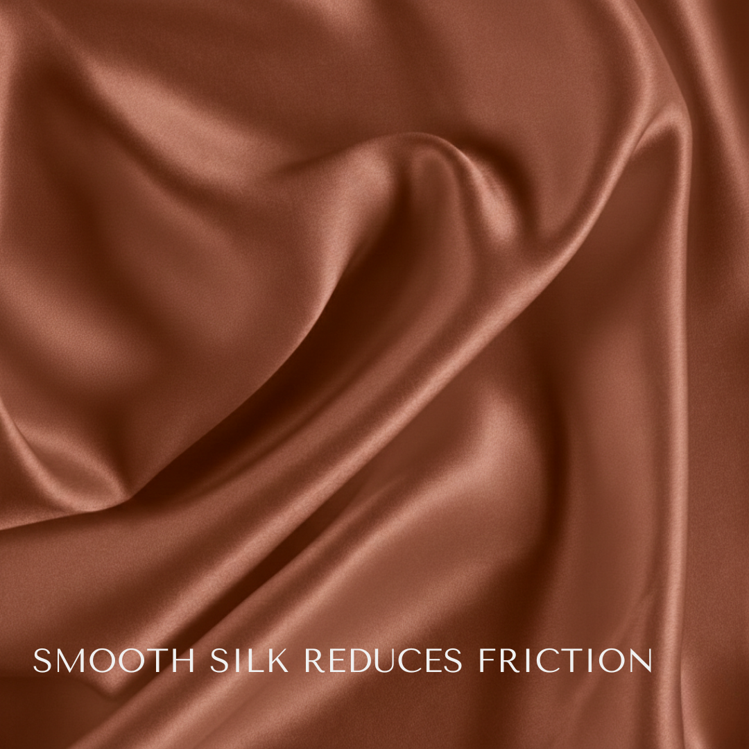 Slim for day, plush for night — gentle silk that protects without pulling.