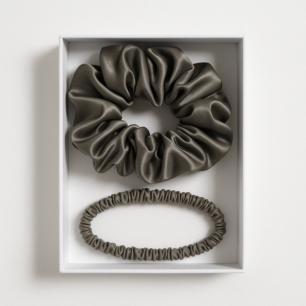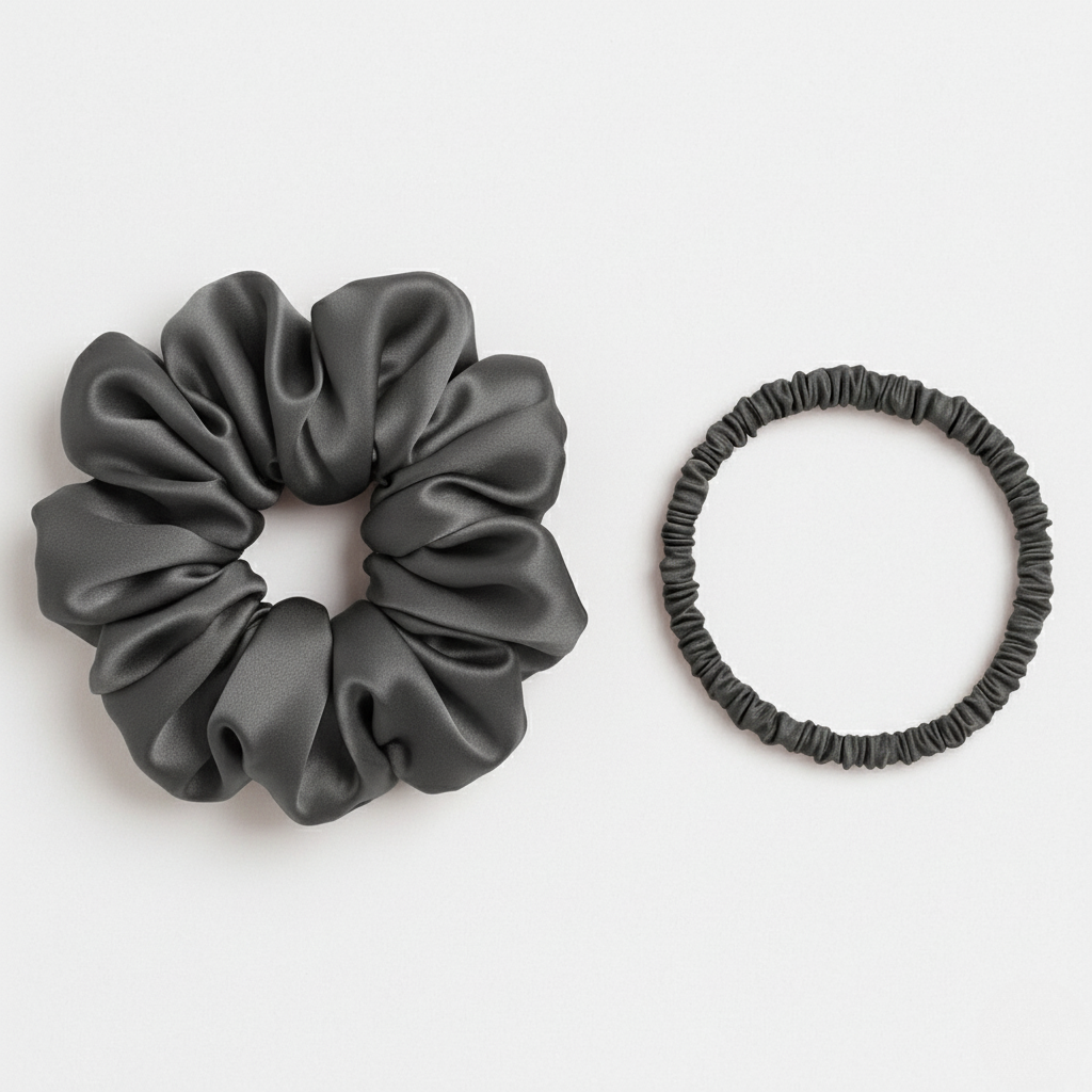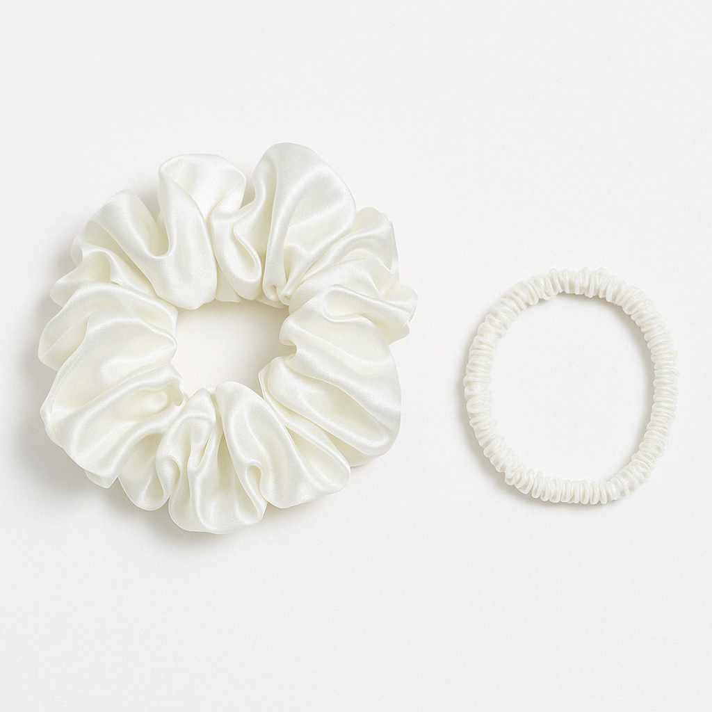 The ZILK Day + Night Scrunchie Set includes two silk scrunchies designed to protect your hair around the clock. The slim “day” scrunchie offers a sleek, comfortable hold without creasing or pulling. The plush “night” scrunchie is soft and protective, ideal for sleep or post-shower care. Crafted with our signature NeuroSilk™, both scrunchies help reduce friction, minimize breakage, and keep hair healthier and smoother.