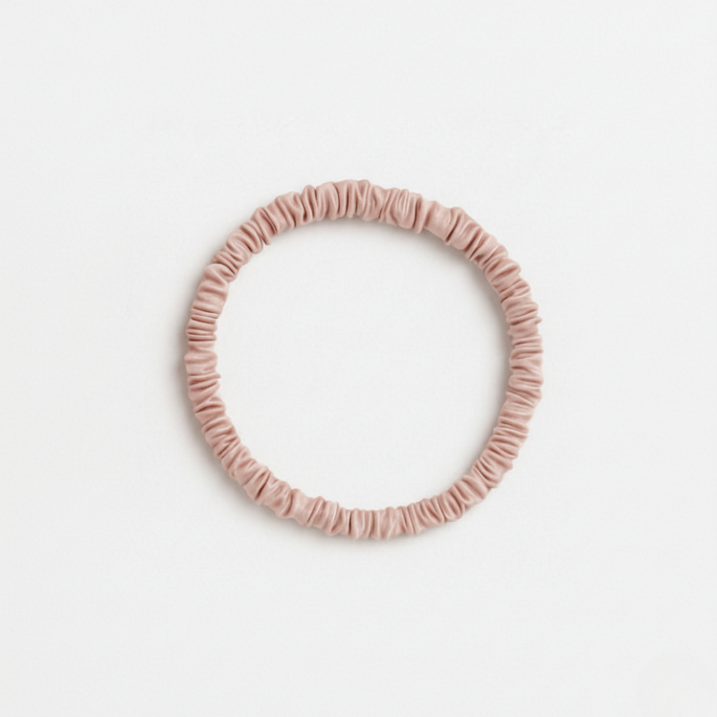 Slim for day, plush for night — gentle silk that protects without pulling.